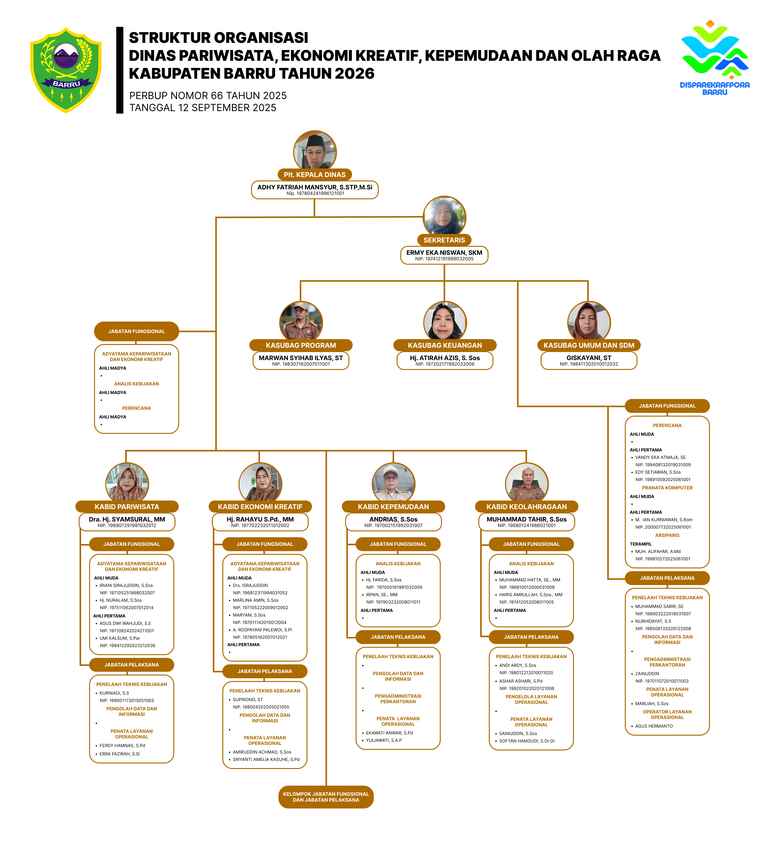 Dinas Pariwisata, Ekonomi Kreatif, Kepemudaan dan Olahraga Kabupaten Barru merupakan perangkat
