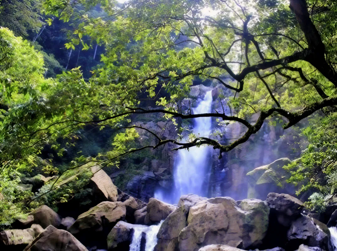 - Suara: Gemuruh air yang jatuh menimpa bebatuan menciptakan white noise alami yang menenangkan pikiran.
